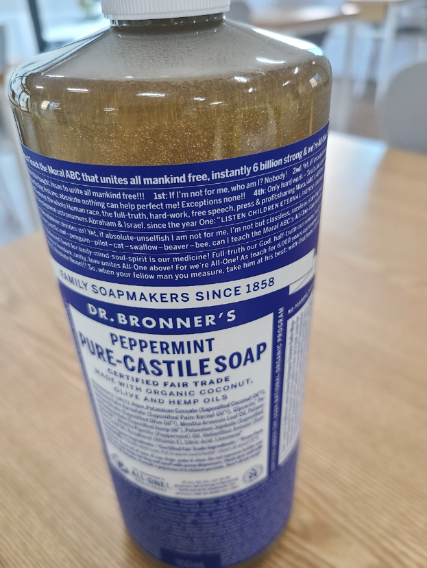 닥터브로너스 제품을 처음 사용해보시는 분들께 몇 가지 팁을 드리자면, 먼저 퓨어 캐스틸 솝은 농축된 형태로 제공되기 때문에 물에 희석해서 사용하는 것이 좋아요. 저는 보통 1:3 비율로 희석해서 사용하고 있는데, 이렇게 하면 제품을 더 오래 사용할 수 있어서 경제적이에요.